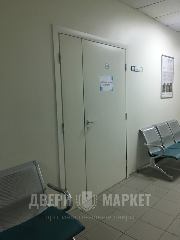 В рамках проекта были установлены двери двух видов — полуторные глухие конструкции, обеспечивающие надежное перекрытие проемов повышенной ширины, и двери со стеклом, позволяющие сочетать требования пожарной безопасности с визуальным контролем обстановки в помещениях. Такое решение отвечает как строгим нормам защиты, так и потребностям медицинского учреждения в удобстве и функциональности.